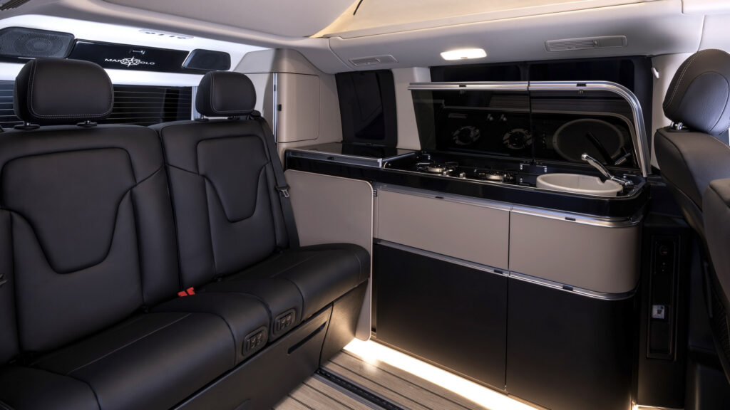 Крім ліжка на даху, задній диван можна трансформувати у друге двоспальне ліжко в основному салоні. У кабіні зберігаються два 12,3-дюймові дисплеї, які тепер працюють на оновленій системі Mercedes-Benz Advanced Control для зручнішого керування функціями, пов’язаними з кемпінгом.