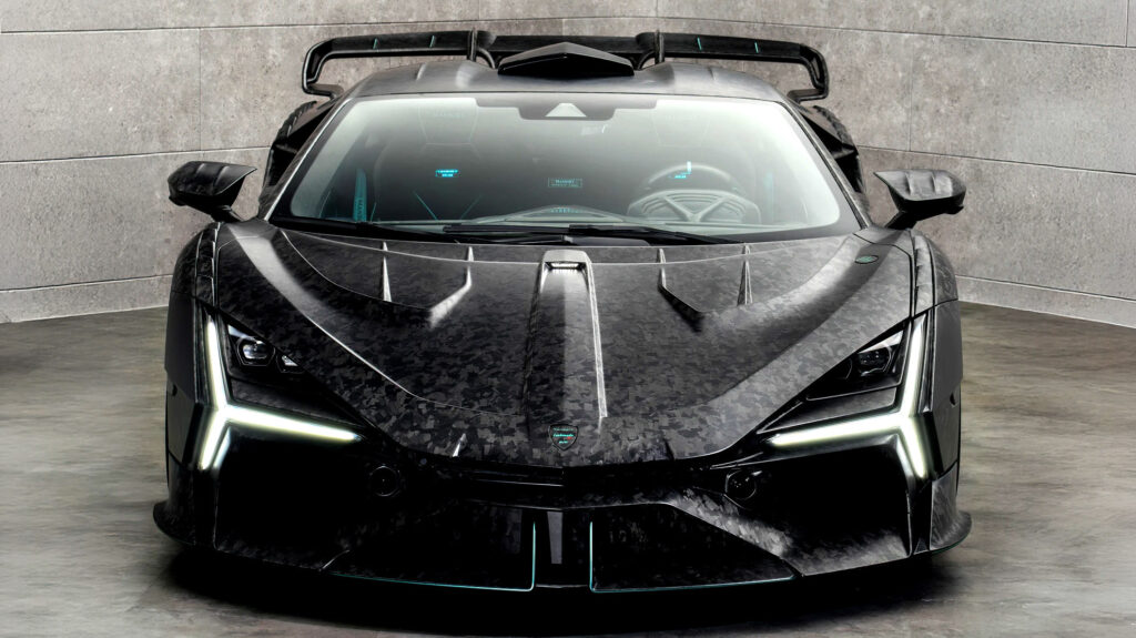 Так, Mansory знову взялася за творіння Sant’Agata, і цього разу вирішила, що головним недоліком Revuelto є брак тонкощів. Carbonado X — це повномасштабний ремікс, на який накладено стільки кованого вуглецевого волокна, що починаєш цікавитися, скільки ж власне Lamborghini залишилося під усім цим.