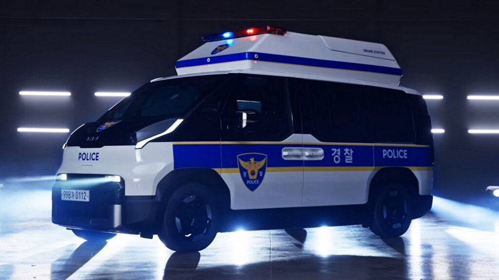 Звичайний розвізний фургон зазнав кардинальних змін. Kia PV5, який донедавна був відомий як універсальний електричний робочий автомобіль, тепер перекваліфікували для правоохоронних органів. Компанія уклала угоду з Національним агентством поліції Південної Кореї на створення високотехнологічного патрульного автомобіля зі штучним інтелектом, який також оснащений дроном.