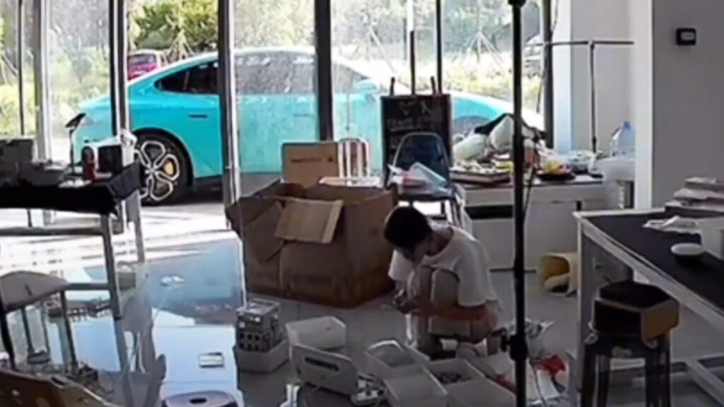 Інцидент стався 30 вересня, коли власник автомобіля, Лі Сяошуан, припаркував свій блакитний SU7 біля магазину в місті Вейхай. Через кілька хвилин, поки він перебував всередині закладу з жінкою, автомобіль раптово почав повільно рухатися вперед без водія. Помітивши це, Лі вибіг на вулицю і кинувся наздоганяти свій електромобіль.